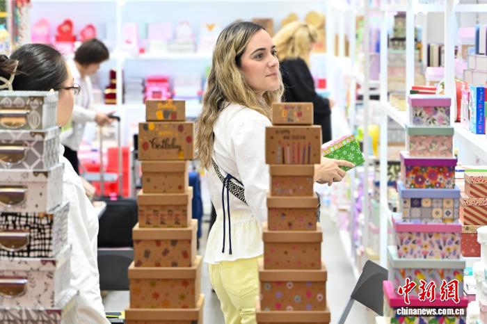 图为境中推销商正在礼物及赠品铺区选择产物。中新社记者 旧骥旻 摄